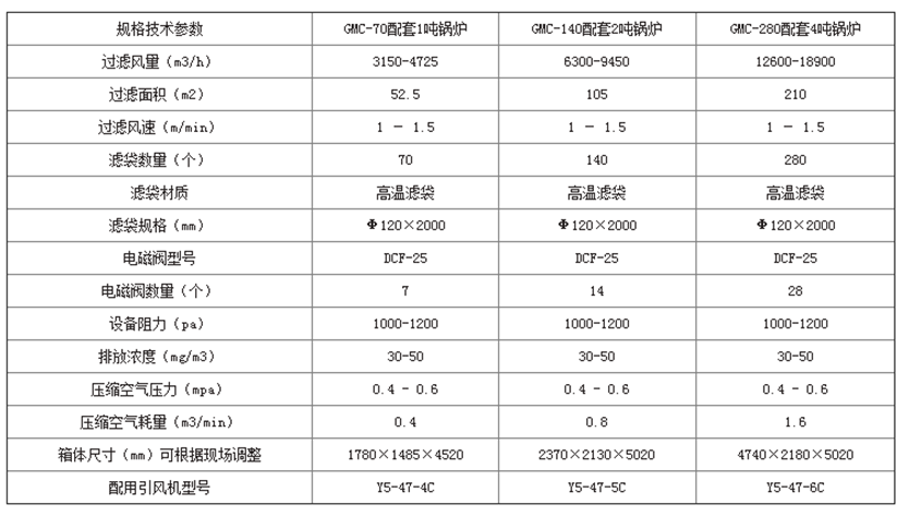 常用鍋爐除塵器技術(shù)參數(shù)