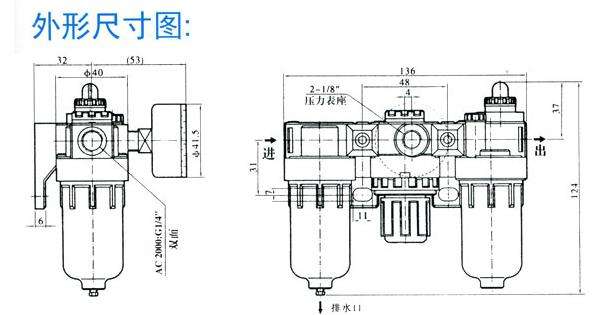 氣源三聯(lián)體是布袋除塵器配件中的一種,此配件一般接在除塵器氣包的前面的管道上,它的組成比較簡單,但發(fā)揮的作用確不可忽視。氣源三聯(lián)體又叫油水分離器,一般由分水濾氣器、減壓閥、油霧器3部分組成,分水濾氣器可以通過濾芯將空氣中水分過濾;減壓閥通過彈性元件來調整出口壓力;油霧器將油變成油霧添加在壓縮空氣中,作為氣動元件的潤滑。.如果除塵器的氣包前面沒有此配件的話,氣包在使用中進入水分和油分就會影響除塵器電磁脈沖閥的使用效果,或者直接影響電磁閥的正常工作。如果氣包前面沒有油水分離器的話,除塵器的氣包上就得安裝排污閥,定期進行排污,以免氣包內的臟東西影響除塵器設備正常工作。