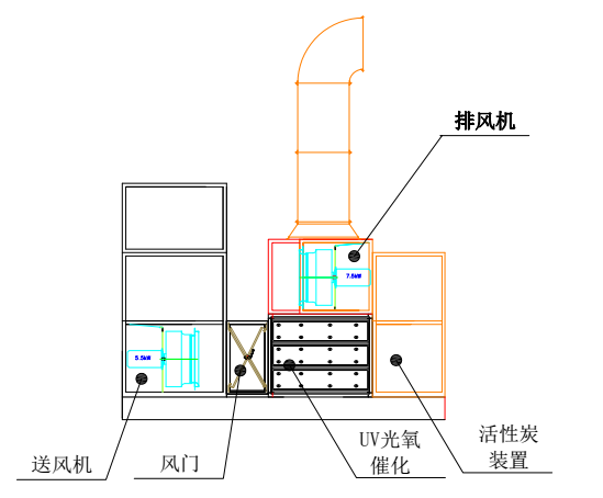 最后,通過三重處理的氣體經(jīng)風(fēng)機(jī)抽排到大氣中。